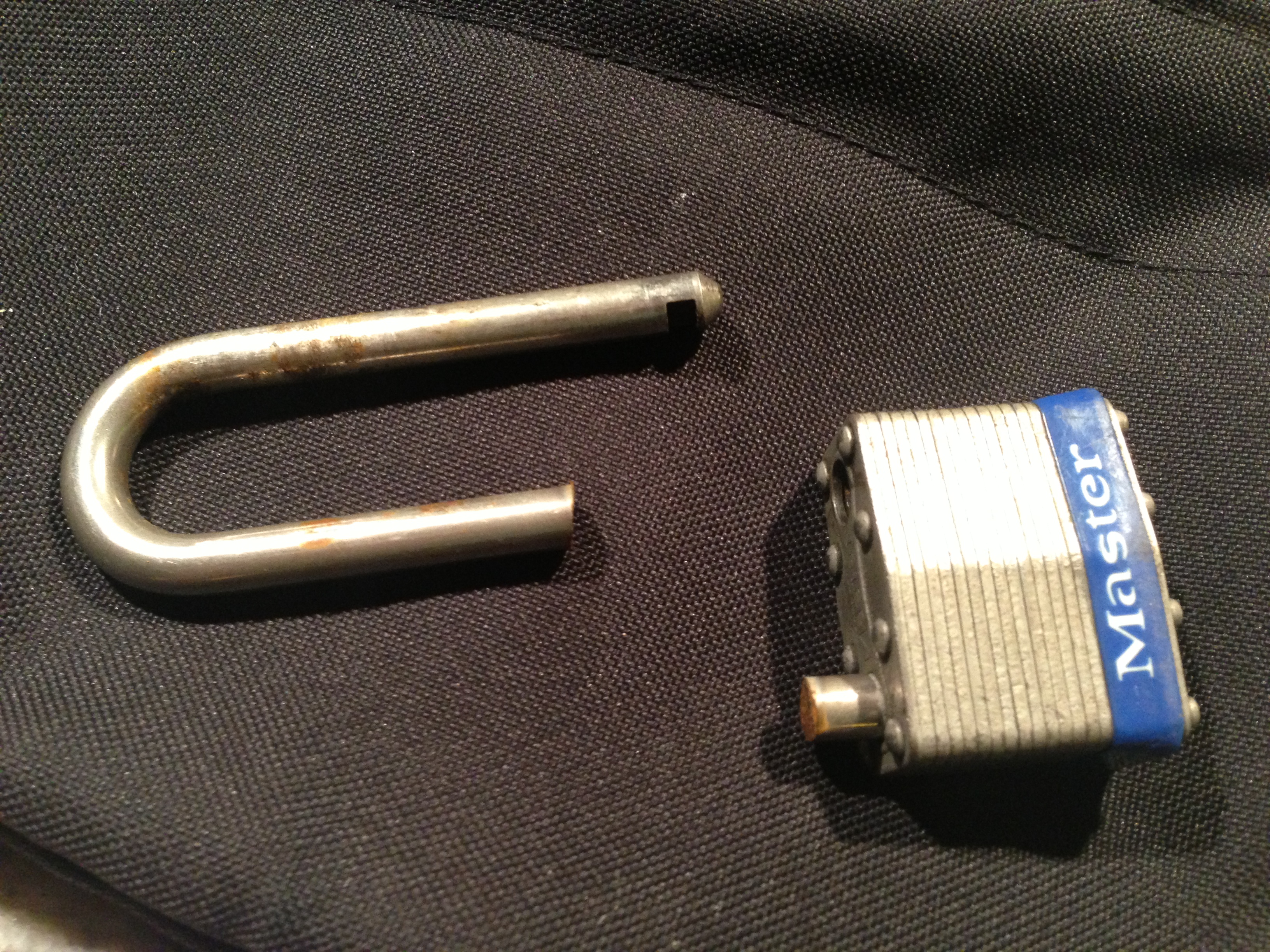 Saturday morning rolls around, and of course Walmart is out of bolt cutters. And the bolt cutter Phil got from a random hardware store isn’t up to the job of cutting off the locks. Luckily we were able to borrow Tom Wickersham’s angle grinder and Phil cut the locks of literally minutes before first practice started.